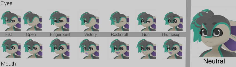 - Seperate eyes and mouth gestures that are combinable! (Left hand -> mouth | Right hand -> eyes)